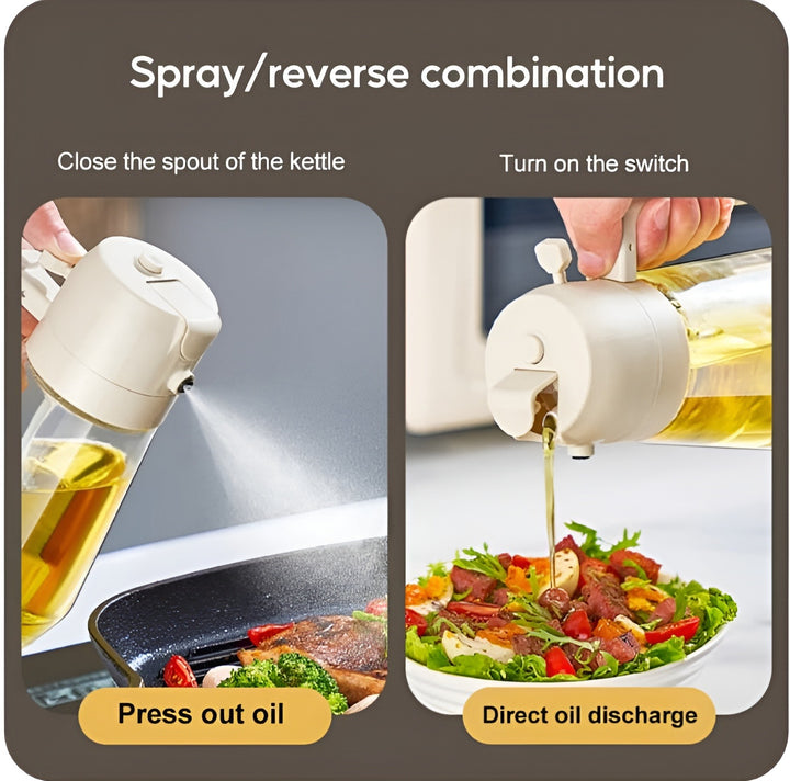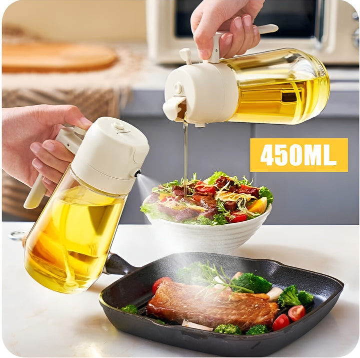 This 2-in-1 Oil Dispenser Bottle combines an olive oil sprayer and dispenser in a single 500ML (17OZ) container, designed for precise and convenient use in cooking, baking, BBQs, salads, and air frying. Its reliable spray mechanism ensures even distribution of oil, helping to control portions and reduce waste. Ideal for professional kitchens and home cooks alike, it enhances culinary results by delivering just the right amount of oil every time. Durable and easy to clean, this versatile bottle is a practical tool for healthier and more efficient food preparation.